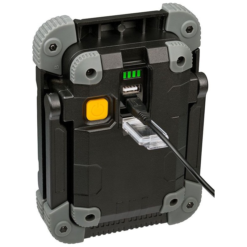 vorgestellte Scheinwerfer ist ein sehr robustes Gerät, das als Taschenlampe oder als Arbeitsleuchte, als Beleuchtung beim Camping oder als Angel-Lampe verwendet werden kann. Seine Hauptvorteile sind ein sehr starkes Licht mit einer Leistung von 1000 lm, eine Powerbank-Funktion, mit der Geräte über den USB-Anschluss aufgeladen werden können, sowie eine Stoßfestigkeit bei Stürzen aus 2 m Höhe. Ein weiteres Merkmal, das diese Arbeitsleuchte von anderen unterscheidet, ist die Ladezustandsanzeige für den Akku – dank ihr werden Sie nie von einem leeren Akku überrascht. Technische Daten: