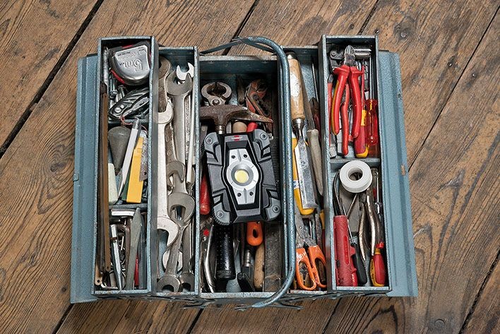 Akku-LED-Scheinwerfer für Arbeiten beim Camping oder beim Angeln.