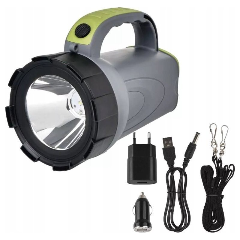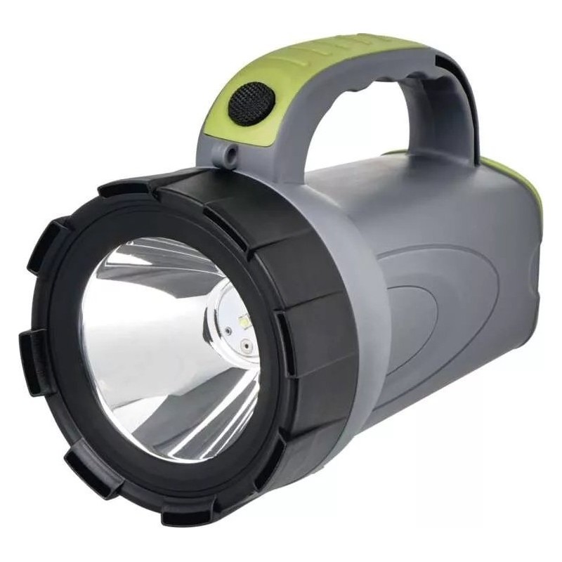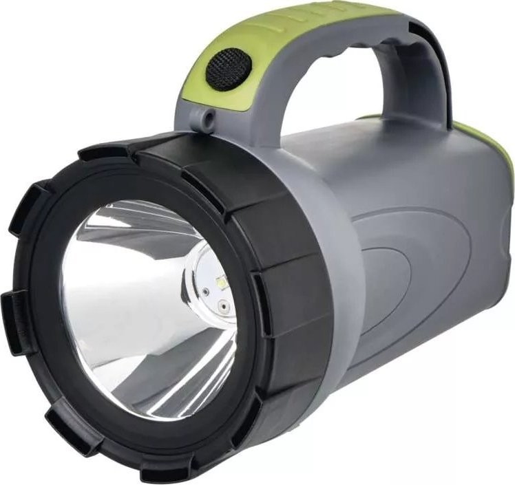 Technische Daten: wiederaufladbare Taschenlampe, Stromversorgung: Li-Ion-Akku, maximaler Lichtstrom: 300 lm, max. Reichweite: 370 m, wiederaufladbar: ja, Zoom: nein, wasserdicht: nein, Material: ABS-Kunststoff, Leuchtdauer: 24–30 Std., Leuchtdauer im Detail: LED 50 % – 30 Std., LED 100 % – 24 Std. Ladezeit 4,5 Std. Stoßfestigkeit nein Farbe grau-schwarz-grün Lichtstrom LED 50 % – 140 lm, LED 100 % – 300 lm Lichtquelle OSRAM LED Reichweite LED 50 % – 250 m, LED 100 % – 370 m Stromversorgungstyp 2 400 mAh/3,7 V Anzahl der Leuchtmodi 2 Anschlusstyp nicht zutreffend Batterien im Lieferumfang enthalten ja LED-Anzeige für Akkustatus nein Modi LED 50 %, LED 100 % LED-Ladeanzeige ja Zubehör Netzteil, Kfz-Ladegerät, Schultergurt Zusatzfunktionen Akkuschutzfunktion Zubehör nicht zutreffend Gewicht 275 g Garantiezeit 2 Jahre Abmessungen 100 × 162 mm
