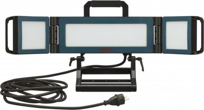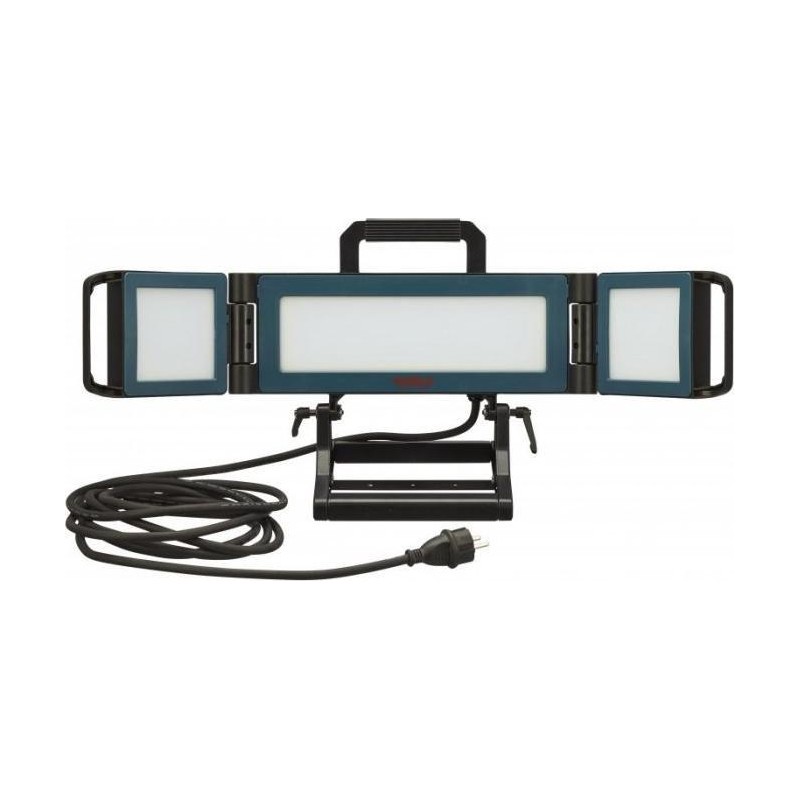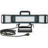 Eine leistungsstarke Lampe mit SMD-Technologie. Sie verfügt über drei separate Lichtquellen, die in unterschiedlichen Winkeln zueinander ausgerichtet werden können, um die bestmögliche Beleuchtung zu erzielen. Es besteht die Möglichkeit, nur das mittlere Hauptpanel oder nur die Seitenpanels zu verwenden. Die Seitenpanels lassen sich zusammenklappen und der Sockel nach oben kippen, wodurch die Leuchte kompakt und transportfreundlich wird. Schlagfestigkeit IK08. Auf der Rückseite mit einer zusätzlichen Netzsteckdose ausgestattet....