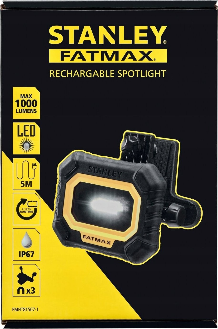 Stanley Akku-Scheinwerfer 1000 lm, 9 Std., 5 m Kabel, IP67