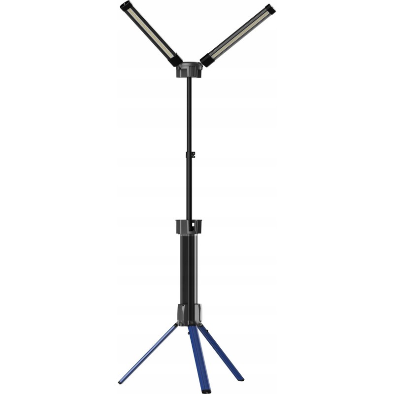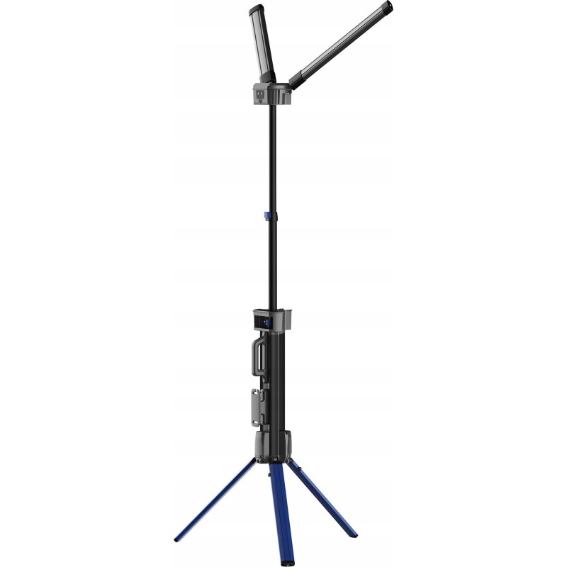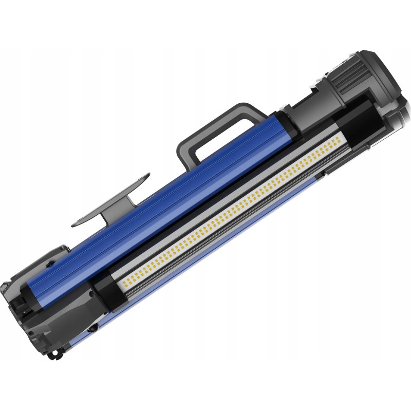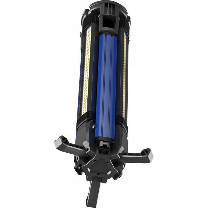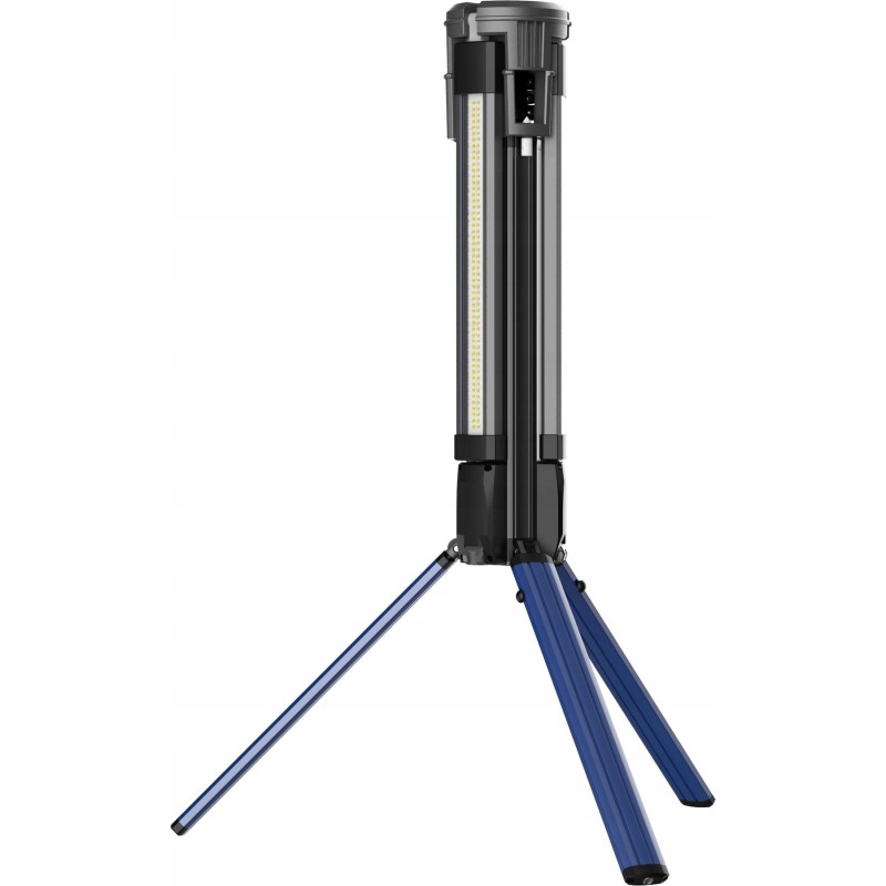 Das praktische Design des Geräts umfasst einen integrierten Griff zum Aufwickeln des Kabels, was für Ordnung und Sicherheit am Arbeitsplatz sorgt. Beidseitige Erdungsschrauben ermöglichen einen stabilen Stand auf unebenem Gelände, und die Möglichkeit, die Leuchte im zusammengeklappten Zustand zu verwenden, erhöht ihre Vielseitigkeit.
