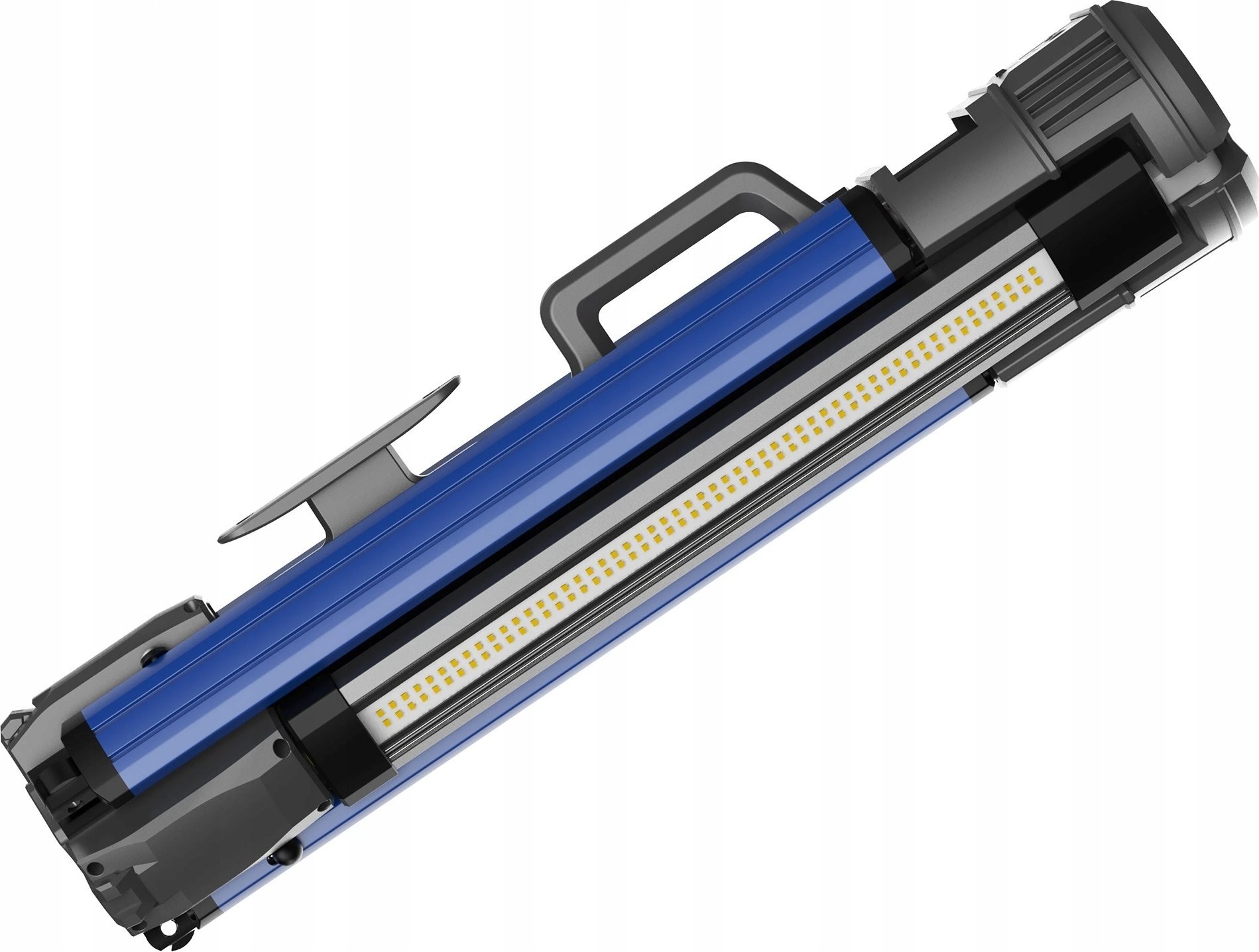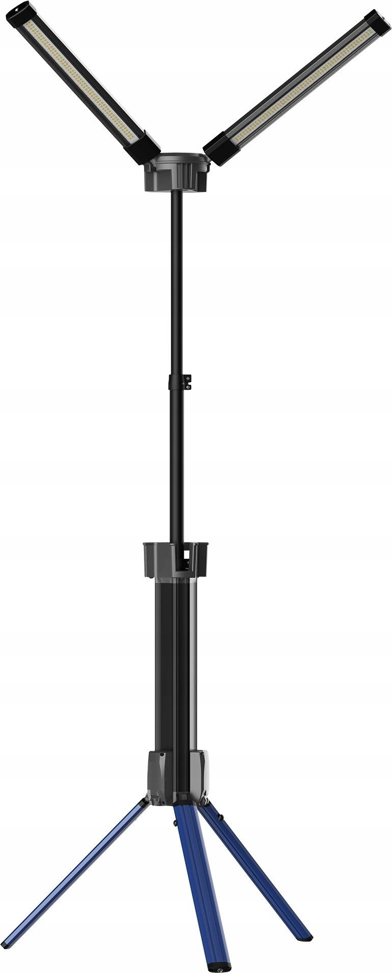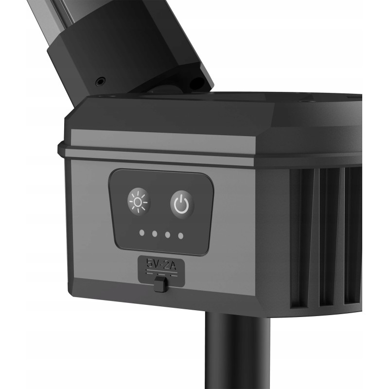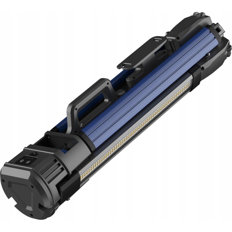 Das praktische Design des Geräts umfasst einen integrierten Griff zum Aufwickeln des Kabels, was für Ordnung und Sicherheit am Arbeitsplatz sorgt. Beidseitige Erdungsschrauben ermöglichen einen stabilen Stand auf unebenem Gelände, und die Möglichkeit, die Leuchte im zusammengeklappten Zustand zu verwenden, erhöht ihre Vielseitigkeit.