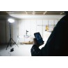 Die Arbeitsleuchte verfügt über 3 neigbare Lichtpaneele, die ein extrem starkes Licht von bis zu 20.000 Lumen abgeben. Das Produkt ist mit einer App kompatibel, die es dem Benutzer ermöglicht, die Beleuchtung über sein Smartphone zu steuern. Mit der App kann man die Leuchte ein- und ausschalten, die Lichtstärke regulieren (dimmen) und einen Timer programmieren, wobei bis zu 100 Einheiten parallel verbunden werden können. Eine zusätzliche Funktion ist der Bewegungssensor, der sich in der mitgelieferten Steuerbox befindet, sodass sich die Leuchte einschaltet, sobald sich eine Person im Umkreis von 5 Metern um die Leuchte befindet. Sie schaltet sich aus, sobald der Bereich von 5 Metern verlassen wird. Diese Funktion kann deaktiviert werden. Darüber hinaus ist die Leuchte dank der Schutzart IP 65 wasserdicht.