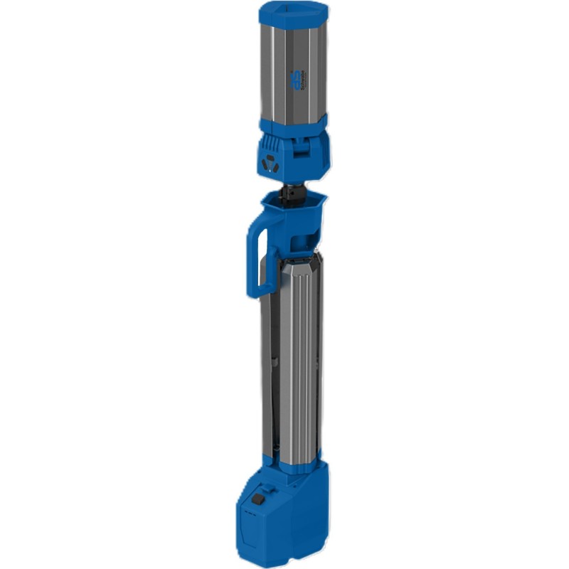 Die Leuchte ist mit drei Lampenköpfen ausgestattet, die um 90° gedreht und um 270° geschwenkt werden können. Jeder Lampenkopf verfügt über drei Helligkeitsstufen: 50 %, 100 % und Aus. So kann der Nutzer die Beleuchtung an seine Bedürfnisse anpassen. Die Leuchte hat eine Farbtemperatur von 4000 K und einen Farbwiedergabeindex (CRI) von >80. Das Teleskopstativ ist zwischen 1,14 m und 2,14 m hoch und mit Schnellverschlüssen ausgestattet, was die Handhabung erleichtert.