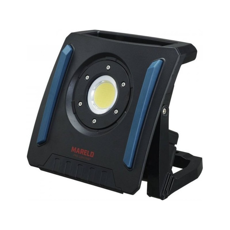 Eine Akku-Arbeitsleuchte mit robuster Bauweise. Sie ist stoßfest und leicht zu transportieren. Die Leuchte kann mit Akkus für Elektrowerkzeuge betrieben werden. Dazu muss ein an der Leuchte befestigter Adapter verwendet werden (es sind Adapter für den Anschluss von 18-V-Akkus der Marken Dewalt, Milwaukee, Makita, Metabo und Bosch erhältlich). Alternativ kann anstelle eines Akkus für Elektrowerkzeuge auch ein Mareld-Akku erworben werden. All dies macht die Lampe äußerst flexibel im Einsatz und bietet dem Benutzer vielfältige Nutzungsmöglichkeiten. Die Lampe lässt sich über eine spezielle Mareld-App per Smartphone steuern, mit der der Benutzer die Lampe ein- und ausschalten, die Lichtstärke regulieren (dimmen) und einen Timer programmieren kann, wobei bis zu 100 Einheiten parallel verbunden werden können. Die Ein-/Ausschalt- und Dimmfunktionen können auch manuell bedient werden. Die Leuchte ist vom Hybridtyp, was bedeutet, dass sie über das Netzkabel selbst mit Strom versorgt werden kann. Darüber hinaus verfügt die Leuchte zur Erhöhung der Sicherheit über eine Notlichtfunktion. Dank der hohen Schutzart des Gehäuses (IP65) kann die Leuchte sowohl im Außen- als auch im Innenbereich eingesetzt werden....
