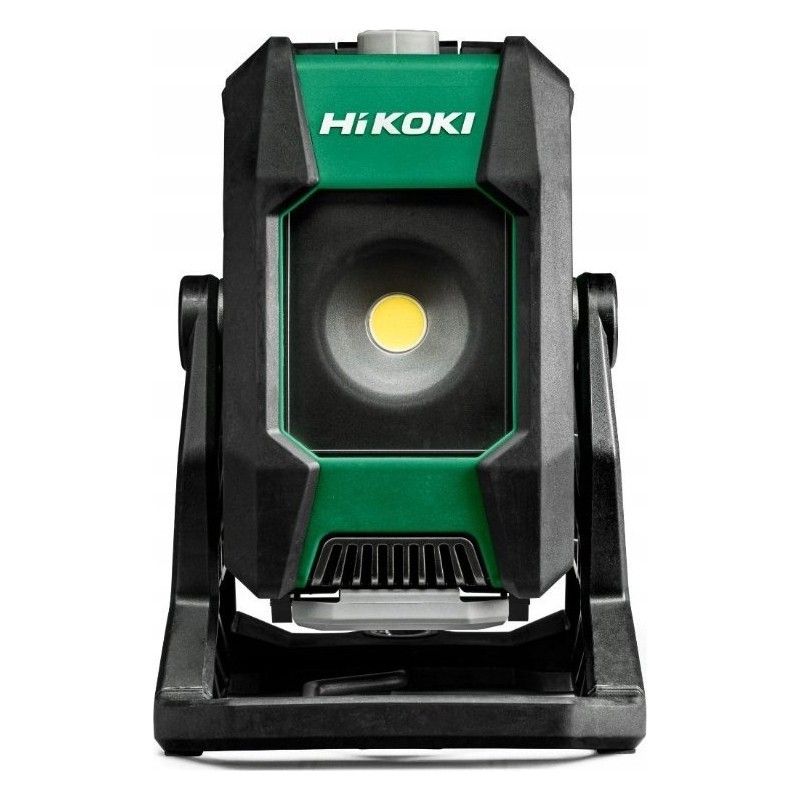 Ästhetische HiKOKI-LED-Baustrahlleuchte mit Akku, entwickelt für schwere Arbeiten auf der Baustelle, widerstandsfähig gegen Wasser, Staub und Stöße. Eigenschaften