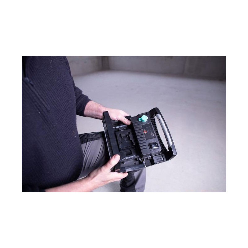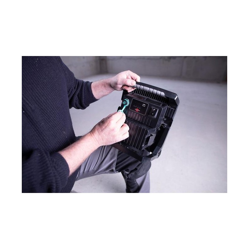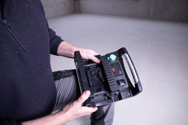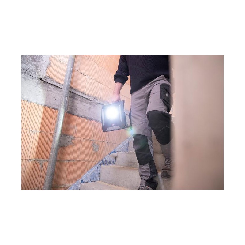 Akku-Scheinwerfer 18 V/230 V von Bosch, Dewalt, Makita, Metabo und Milwaukee Brennenstuhl Multi Battery 18V: Der extrem robuste und helle 60-W-Multi-Battery-LED-Hybrid-Scheinwerfer ist kompatibel mit 38 verschiedenen 18-V-Akkus (verschiedene Ah-Größen) von fünf führenden Elektrowerkzeugherstellern: Bosch Professional, Makita, Dewalt, Milwaukee und Metabo CAS. Unabhängig davon, welches Akkusystem bereits verwendet wird, sorgt das Adaptersystem für verschiedene Akkus für maximale Flexibilität und die Möglichkeit, den gewünschten Akkutyp wiederzuverwenden. Der passende Adapter (im Lieferumfang enthalten) lässt sich mit einem Handgriff in die Schnittstelle einstecken. Dank der Hybridtechnologie kann der schlagfeste Arbeitsscheinwerfer mit integrierten COB-LEDs sowohl über Akku als auch über das 230-V-Wechselstromnetz betrieben werden. Selbst bei einem Stromausfall sorgt der LED-Scheinwerfer für Sicherheit durch die automatische Umschaltung von Netz- auf Akkubetrieb. Darüber hinaus verfügt er über eine Akku-Statusanzeige, die über die verbleibende Energie der verwendeten Akkus informiert (die Akkus müssen extern geladen werden), sowie über das Power-Tool-Akku-Schutzsystem. Dieses schützt die Akkus vor Tiefentladung und Überhitzung. Der LED-Scheinwerfer Multi Battery verfügt darüber hinaus über folgende beeindruckende Eigenschaften: