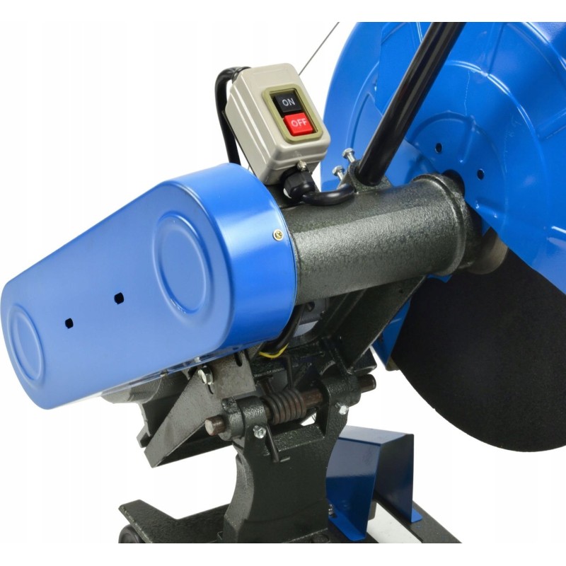 Elektrische Metallsäge. Ideal zum Schneiden verschiedener Stahlsorten wie Rohre, Profile, Winkelprofile, U-Profile und andere. Eignet sich auch zum Schneiden verschiedener Rohrtypen, Fensterrahmen, Stahls und legierten Stählen. Präzises Schneiden dank wasserfester und selbstschmierender Lager mit verstärkter Drehwelle und hoher Drehzahl von 2800 U/min. Ausgestattet mit einer einstellbaren Spannvorrichtung für den Schnittwinkel des Werkstücks.