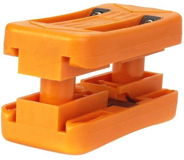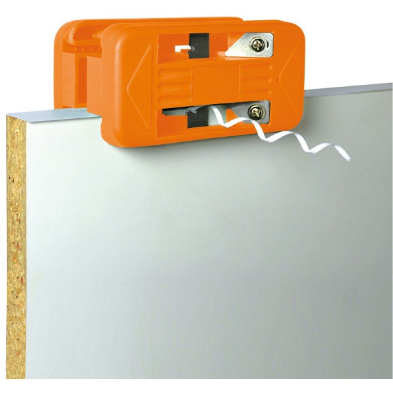 Setzen Sie den Trimmer auf das zu bearbeitende Material, drücken Sie die Enden des Werkzeugs zusammen, stellen Sie den gewünschten Schnittbereich zwischen 13 mm und 40 mm ein und schieben Sie ihn dann in die durch den Pfeil angegebene Richtung – fertig!