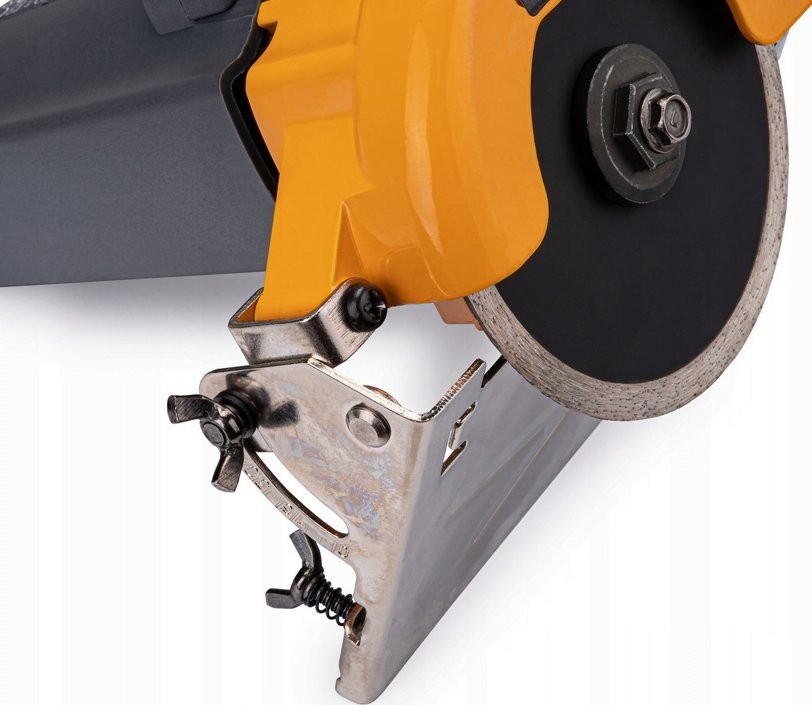 Dies garantiert Zuverlässigkeit und Widerstandsfähigkeit gegen mechanische Beschädigungen. Die Bodenplatte besteht aus dickem Stahl und ist widerstandsfähig gegen Verformungen und mechanische Beschädigungen. Sie gewährleistet einen stabilen Schnitt und eine einfache Führung der Säge über das zu schneidende Material. Zudem ermöglicht die Form der Bodenplatte die Befestigung spezieller Führungen an der Trennschleifmaschine, die das Schneiden in verschiedenen Winkeln ermöglichen.
