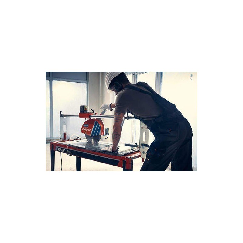 Die Norton Clipper CST150 ist eine Tischsäge für Baustoffe, die sich durch eine robuste Konstruktion auszeichnet und speziell für schwere Arbeiten entwickelt wurde. Die neuen Norton Clipper CST-Tischsägen wurden speziell für das Schneiden von Baustoffen sowie Naturstein entwickelt. Sie verfügen über zwei verchromte Führungsschienen, die einen zuverlässigen und sehr präzisen Schnitt garantieren. Der schwenkbare Sägekopf ermöglicht Schnitte bis zu 45° und verfügt über eine präzise Schnitttiefeneinstellung mittels eines Handrads. Mit den CST-Tischsägen können wir auch große Fliesen mit einer geeigneten Norton Clipper-Diamantscheibe schneiden.