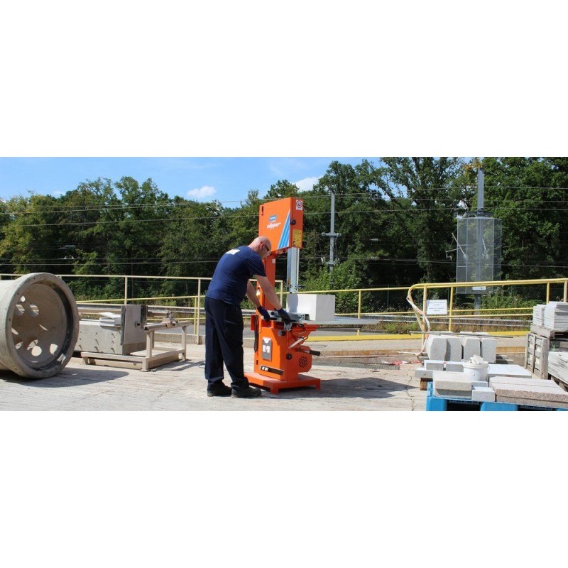 Die Bandsäge Norton CB311 für präzise Trockenschnitte an leichten Bausteinen. Minimale Staubentwicklung beim Trockenschnitt