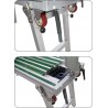 Dies garantiert Zuverlässigkeit und Widerstandsfähigkeit gegen mechanische Beschädigungen. Der Tisch besteht aus robustem Aluminiumguss und rutschfesten Leisten und ist widerstandsfähig gegen Verformungen und mechanische Beschädigungen. Er garantiert einen stabilen Schnitt und eine einfache Führung der Stange über das zu schneidende Material.