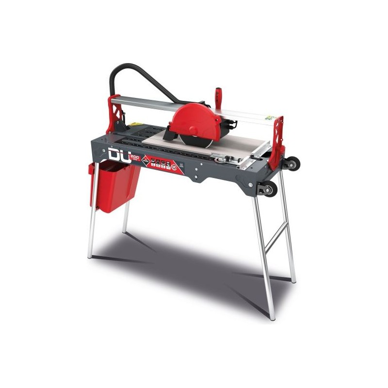 Beschreibung: Elektrische Fliesenschneidemaschine DU-200 EVO mit schwenkbarem Kopf, für Renovierungsarbeiten und leichte Ausbauarbeiten. Zum Schneiden von Keramikfliesen, ideal für Wandfliesen und Feinsteinzeug. Die DU-200 EVO ist mit einem Direktantriebsmotor mit einer Leistung von 0,8 kW (1,1 PS) und einem Thermoschutz ausgestattet.Der Kopf der DU-200 EVO läuft auf vier Lagern und lässt sich für Gehrungsschnitte um 45° neigen. Außerdem ist er mit einem Griff aus speziellen Materialien ausgestattet, der den Arbeitskomfort erhöht. Im Lieferumfang enthalten ist eine Diamantscheibe mit 200 mm Durchmesser für Wandfliesen mit durchgehendem Rand. Die Wasserpumpe (8 W) sorgt durch Druckregulierung für eine dem zu schneidenden Material angepasste Kühlung der Scheibe. Die innovative Rahmenkonstruktion verfügt über ein effizienteres Wassersammelsystem, mit dem bis zu 50 % mehr Wasser zurückgewonnen werden kann. Der herausnehmbare 8-Liter-Tank erleichtert das Befüllen, Entleeren, den Transport und die Reinigung. Dadurch ist die Bedienung der Schneidemaschine für den Anwender einfach und intuitiv, und die Sauberhaltung des Arbeitsplatzes stellt kein Problem dar. Die RUBI DU-200 EVO verfügt über klappbare Stützen, die neben einer besseren Stabilität dem Fliesenleger die richtige Arbeitshöhe (90 cm) gewährleisten. Am Rahmen befestigte Rollen und ein Griff erleichtern das Bewegen und den Transport der Maschine. Das geringe Gewicht und die Mobilität der Wasserschnittmaschine DU-200 EVO ermöglichen eine problemlose Bedienung durch eine einzige Person. Die DU-200 EVO ist mit einem Frontanschlag mit Millimeterskala sowie einem seitlichen Anschlag für Wiederholungsschnitte und Winkelschnitte mit einer Verstellbarkeit von 0° bis 45° ausgestattet. Hinweis: Die Schnittmöglichkeiten können je nach Position des Schneidkopfes, der Spezialspannvorrichtungen und des Scheibendurchmessers variieren.