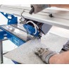 • Der Arbeitstisch ist mit einer Millimeterskala, einem Winkelmaß und einem Anschlag ausgestattet