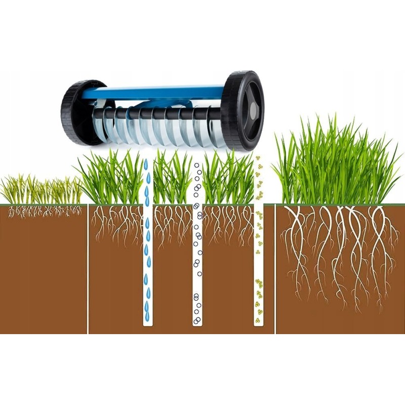 Dieses Gerät ermöglicht es, die Rasenoberfläche gründlich aufzuschneiden und überschüssigen Rasen sowie abgestorbene Grashalme zu entfernen.