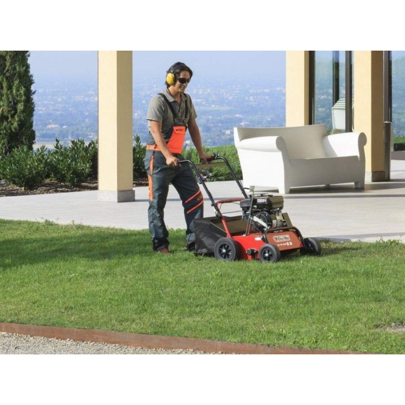 • Robuste Robin- und Honda-Verbrennungsmotoren mit obenliegendem Ventil sorgen für einen gleichmäßigen Lauf und liefern die erforderliche Leistung. Sie ermöglichen die vollständige Entfernung von Moos, Unkraut und anderen Pflanzenresten.
