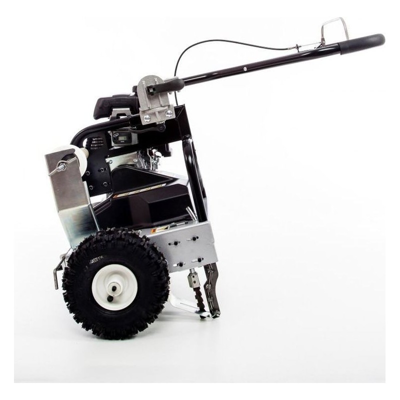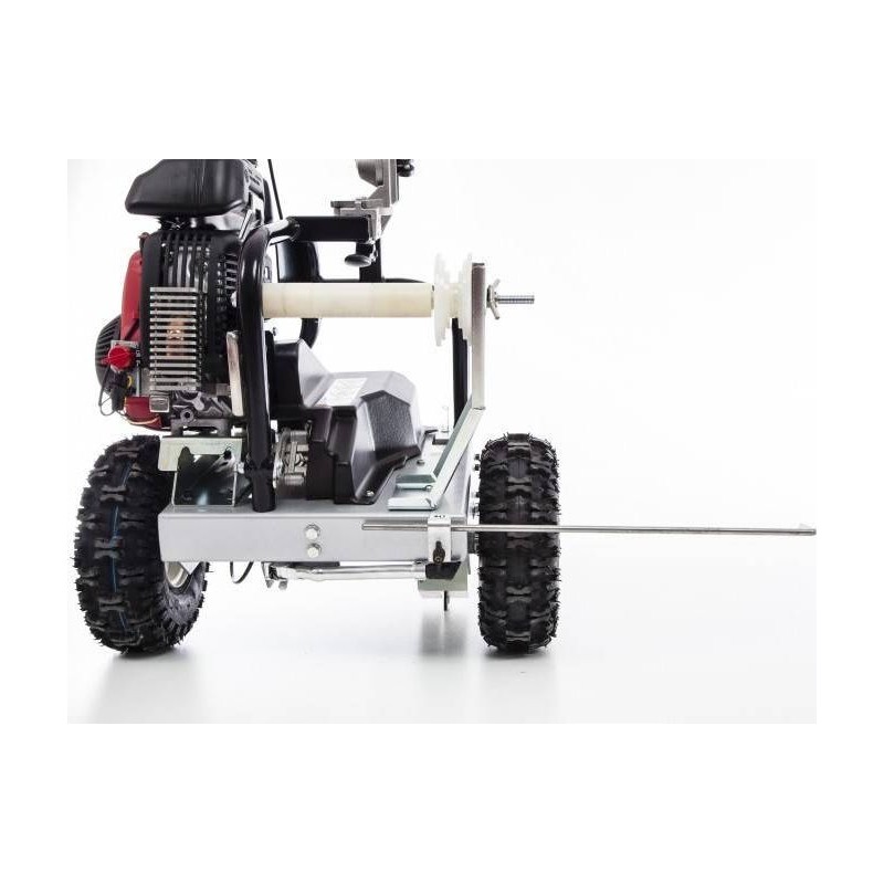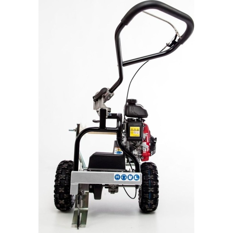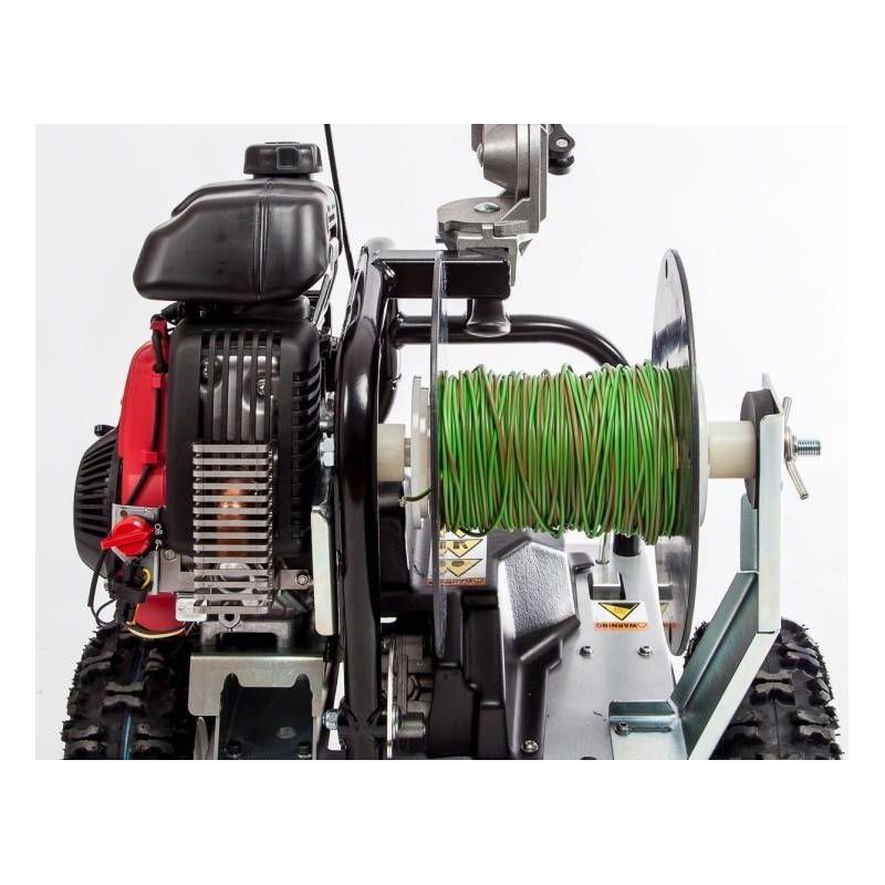 Der CEDRUS VONBLON KVM600MH mit Antrieb ist ein professionelles Gerät zum Verlegen von Kabeln. Das Gerät passt sich leicht an das Gelände an. Die Antriebseinheit ist, wie es sich für ein solides Produkt gehört, ein Viertakt-Verbrennungsmotor von HONDA GXH mit 2,1 PS. Sensationelle Leistung: bis zu 600 m pro Stunde. Einfach zusammenklappbar und zu transportieren. Die niedrige und kompakte Bauweise des PWM 600 MH ermöglicht Arbeiten an engen Stellen, z. B. an einer Wand, einem Zaun oder sogar in einer Ecke. Sehr einfache Bedienung. Das Gerät ist mit einem verstellbaren, ergonomisch geformten Handgriff mit integriertem und verstellbarem Antriebshebel ausgestattet. Dank der seitlichen, außenliegenden Messerschiene kann das Kabel sehr nah an den Rändern verlegt werden. Das Gerät verfügt über einen Fahrantrieb, der die Arbeit erleichtert, sowie über einen Betriebsstundenzähler.