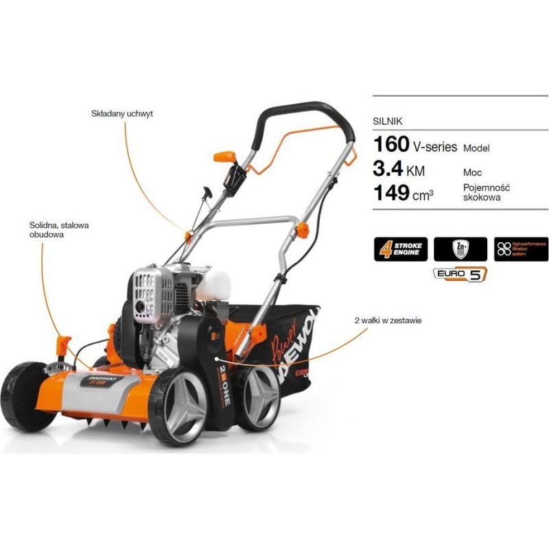 Der benzinbetriebene Belüfter/Vertikutierer der Marke Daewoo ist für die richtige Rasenpflege konzipiert. Das Gerät dient dazu, die filzartige Schicht zu entfernen und den Rasen zu belüften. Dadurch wird die Effizienz der Bewässerung und Düngung des Rasens erhöht. Im Lieferumfang der Maschine sind zwei austauschbare Arbeitswalzen enthalten, sodass das Gerät als Vertikutierer oder Belüfter eingesetzt werden kann und so einen umfassenden Schutz und eine umfassende Pflege des Rasens gewährleistet.
