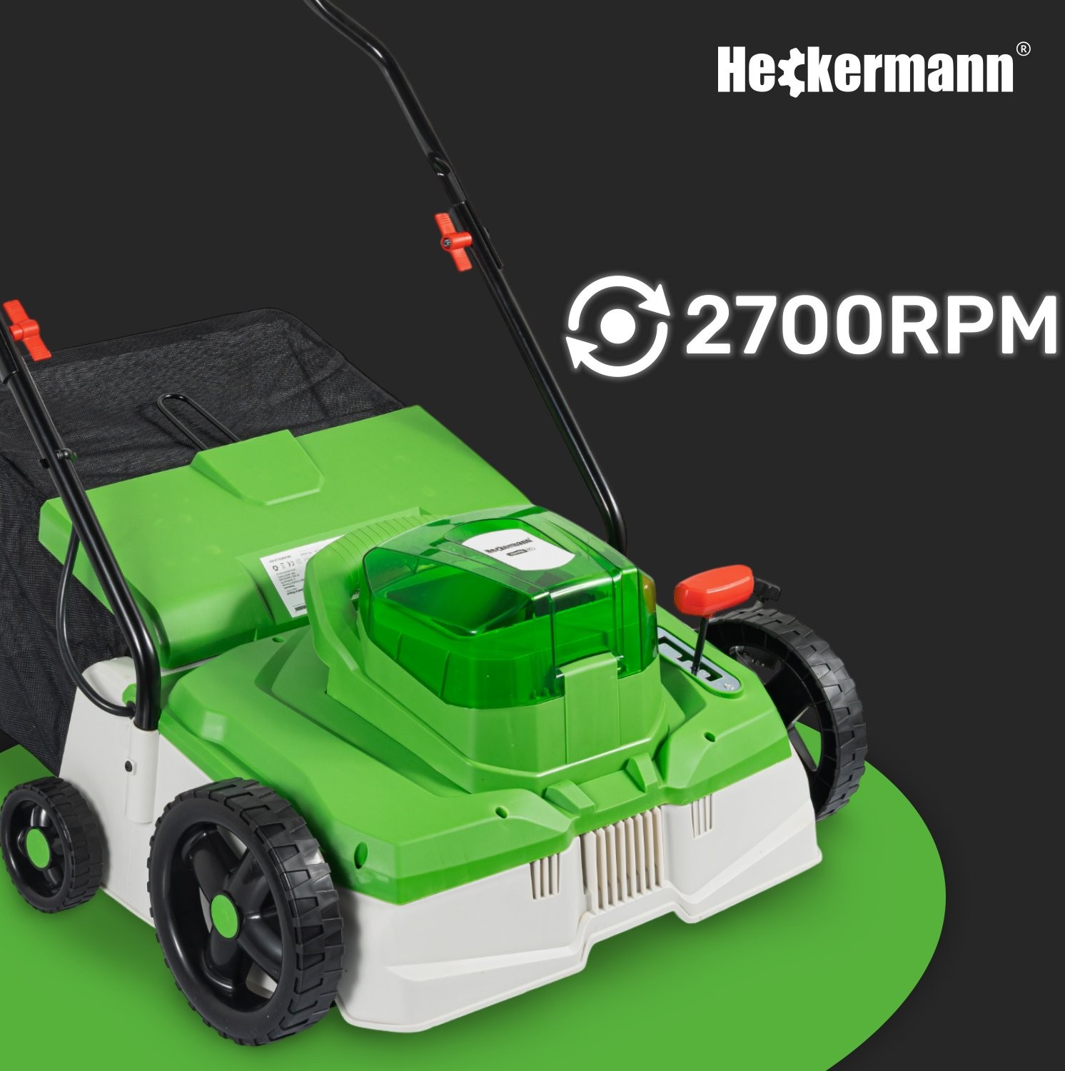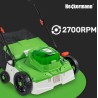 Der Akku-Vertikutierer Heckermann AMWA40 wird von einem 480-W-Motor angetrieben, der eine Drehzahl von 2700 U/min erreicht. Diese Leistung sorgt für einen effizienten Betrieb, was sich in einer schnellen und effektiven Rasenpflege niederschlägt.
