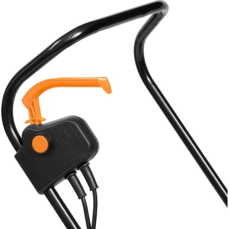 Das Gerät ist mit einem großen Grasfangkorb mit einem Fassungsvermögen von 30 Litern ausgestattet. Dies ermöglicht einen längeren Arbeitszyklus, ohne dass häufige Pausen zum Entleeren erforderlich sind. Das doppelte Nylongeflecht hält das Gras zuverlässig zurück und verhindert, dass das Schnittgut nach außen gelangt.