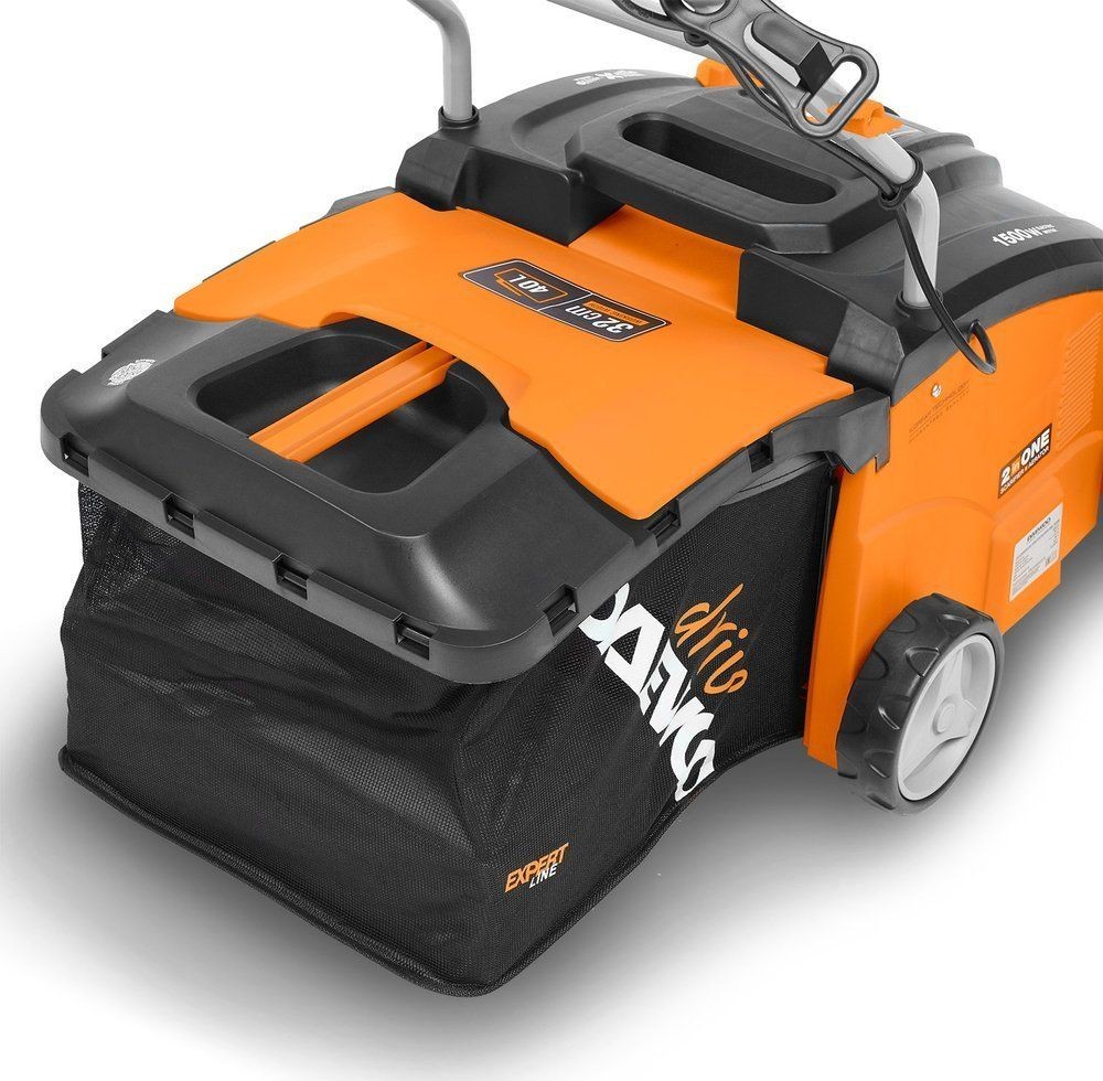 Der DAEWOO DSC 1500E ist ein elektrischer Vertikutierer für die richtige Rasenpflege. Das Gerät dient dazu, die filzartige Schicht zu entfernen und den Rasen zu belüften. Dadurch wird die Effizienz der Bewässerung und Düngung des Rasens erhöht. Im Lieferumfang der Maschine sind zwei austauschbare Arbeitswalzen enthalten. Mit ihr können wir die Vertikutierung durchführen – eine Rasenpflegebehandlung, bei der der oberflächliche Humus entfernt wird – sowie die Belüftung (eine Pflegebehandlung für intensiv genutzte Rasenflächen, die der Belüftung dient). Der Vertikutierer ist mit einem zuverlässigen 1300-W-Elektromotor ausgestattet. Das robuste Gehäuse aus leichtem Kunststoff ist widerstandsfähig und witterungsbeständig. Das Gerät verfügt über eine zentrale 5-stufige Arbeitshöhenverstellung, die eine Anpassung an verschiedene Bodenarten ermöglicht. Die große Arbeitsbreite von 32 cm erleichtert die Arbeit und verkürzt die dafür benötigte Zeit. Darüber hinaus verfügt der Vertikutierer über einen geräumigen Netzsammelkorb mit einem Fassungsvermögen von 30 Litern, sodass die Arbeit nicht ständig unterbrochen werden muss, um ihn zu entleeren. Hervorzuheben ist auch, dass das Gerät äußerst komfortabel und sicher ist.