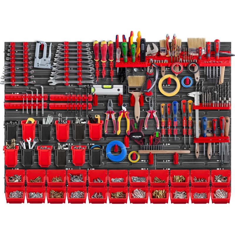 Unordentliche Werkzeuge können bei Arbeiten im Haushalt zur Verzweiflung führen, aber diesen Stress können Sie ganz einfach vermeiden. Unsere Werkzeugtafel hilft dir dabei, den Platz in deiner Garage oder Werkstatt perfekt zu organisieren. Dank ihr kannst du alle Geräte bequem aufhängen und musst nie wieder nach irgendwelchen Gegenständen suchen. Deine Werkzeuge warten immer dort, wo du sie brauchst, ordentlich an einem Ort. Das Angebot umfasst 4 Produktgrößen: 116 x 78, 117 x 78, 78 x 78 und 58 x 78 cm. Du kannst diejenige wählen, die am besten zu deinem verfügbaren Platz passt.