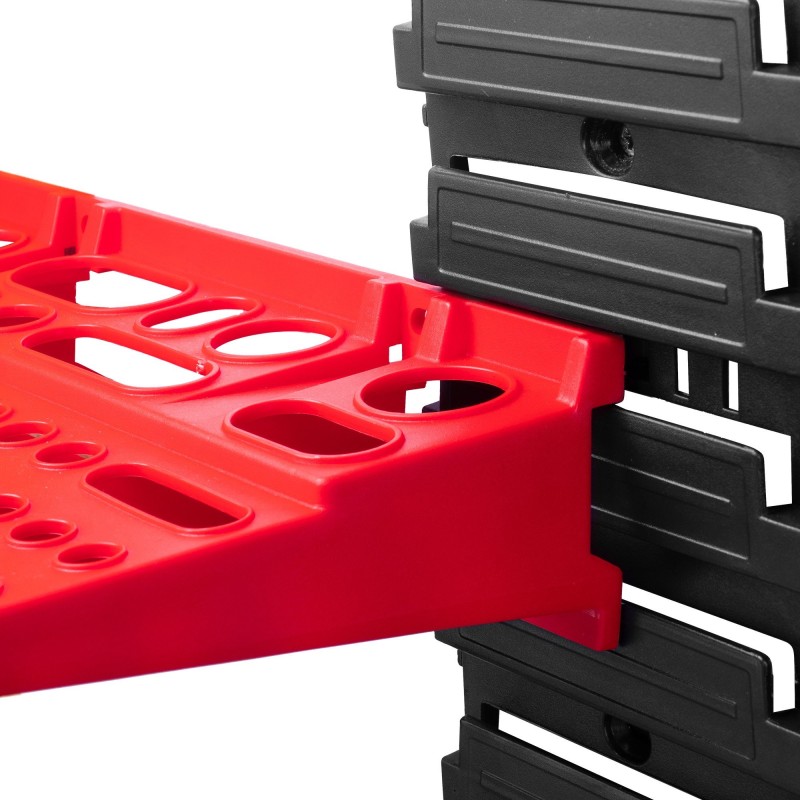 Die Werkstattwand ist als modulares System aufgebaut, das du ganz nach deinen Anforderungen frei konfigurieren kannst. Das ist eine große Erleichterung, da du die Wand immer perfekt an deinen Raum anpassen kannst. Sie müssen nicht nach einem Platz suchen, an den sie passt, denn die Werkstattwand passt sich dem Platz an! Dank ihrer Beständigkeit gegen schädliche UV-Strahlung kann sie auch im Außenbereich verwendet werden. Wenn also dein Haus oder deine Garage voll sind, kannst du die Außenwände nutzen.