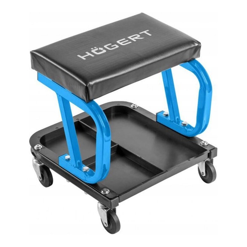 Der mobile Werkstattstuhl ist eine komfortable Lösung für Personen, die in Werkstätten, Garagen und anderen Orten arbeiten, an denen Ergonomie bei der Arbeit wichtig ist. Er dient als vielseitiges Hilfsmittel, das eine bequeme Fortbewegung in der Werkstatt ermöglicht. Unter dem Sitz befindet sich ein praktischer Stauraum, der in funktionale Fächer unterteilt ist.