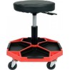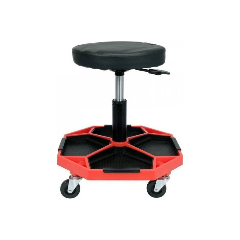 Bequemer Werkstattstuhl mit Fächern zur Aufbewahrung kleiner Gegenstände.