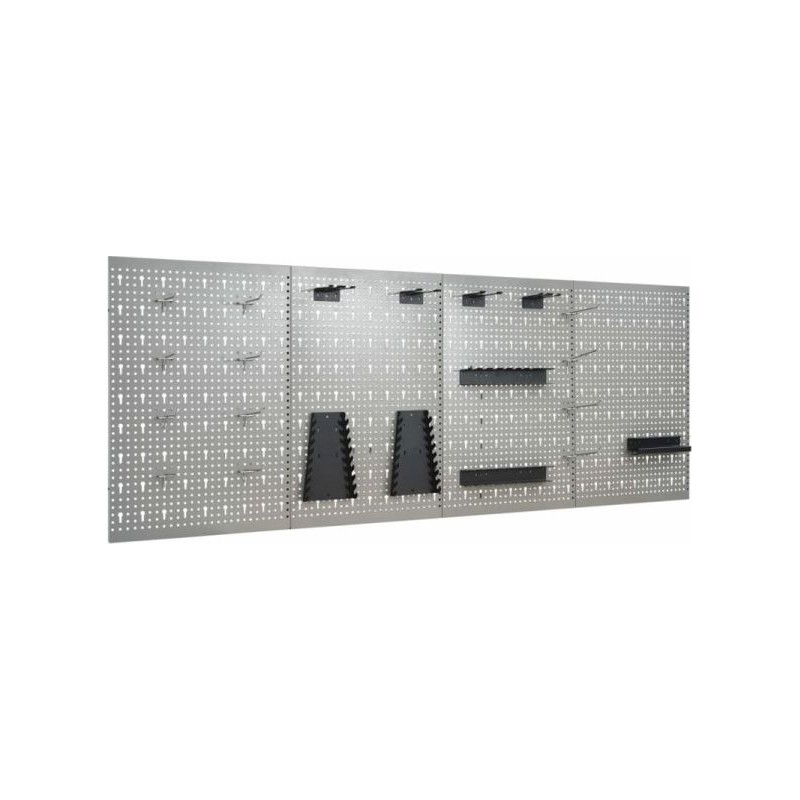 Unsere perforierte Wandplatte sorgt für Ordnung bei Ihren Werkzeugen und macht diese leicht zugänglich. Sie kann in der Werkstatt, in der Garage oder in gewerblichen Räumen aufgehängt werden. Diese Werkzeugpaneele aus robustem Stahl tragen das Gewicht verschiedener Werkzeuge wie Bohrmaschinen, Zangen, Schraubendreher und Schraubenschlüssel. Die Platten sind perforiert, damit die Werkzeuge einfach und sicher aufgehängt werden können. Die 4 Paneele können miteinander verbunden werden, um ihre Steifigkeit zu erhöhen. Dank einer Breite von 160 cm ist dies die ideale Lösung für Ihren Arbeitstisch und Ihren Werkstattschrank. Farbe: Grau Material: Stahl Abmessungen (Einzelstück): 40 x 58 x 1 cm (L x B x H)Metallstärke: 0,5 mm Durchmesser der kleinen Öffnung: 5,5 mm Abmessungen der Längsöffnung: 9,4 x 22,5 mm (B x H) Verschiedene Öffnungen Passend für einen 160 cm langen Arbeitstisch Lieferumfang: 4 x Lochplatte 21 x Befestigungszubehör...
