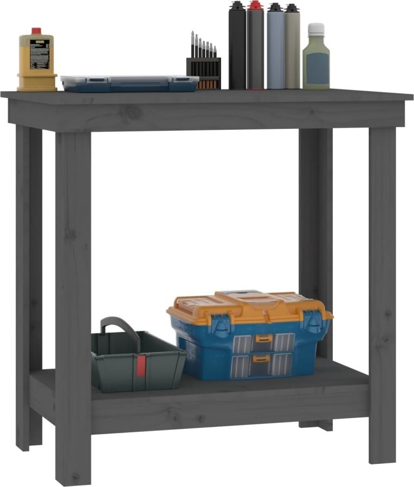 vidaXL vidaXL Arbeitstisch, grau, 80 x 50 x 80 cm, massives Kiefernholz