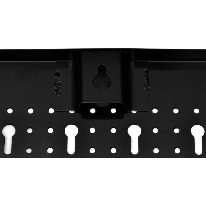 Die Tafel besteht aus drei Teilen, die je nach Bedarf zusammen oder einzeln verwendet werden können. Die perforierte Aufbewahrungsplatte eignet sich ideal zum Aufhängen von Werkzeugen, um diese in der Garage oder Werkstatt sauber und ordentlich zu halten.