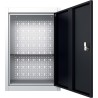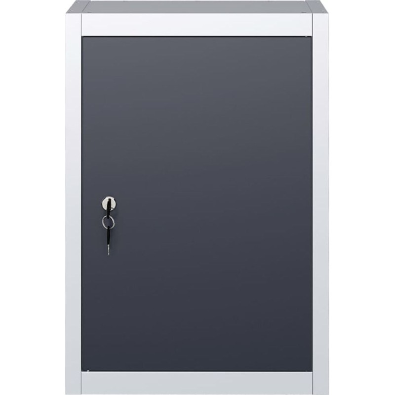Farbe: grau-schwarz Material: Metall Maße: 40 x 19 x 60 cm (B x T x H) Mit 1 verstellbarem Einlegeboden und 1 Lochblech mit Euro-Löchern Mit 1 abschließbarer Tür (2 Schlüssel im Lieferumfang enthalten) Montage erforderlich: ja