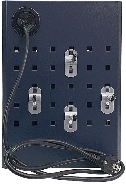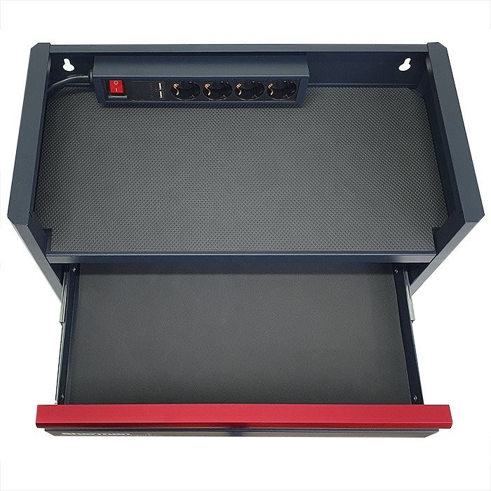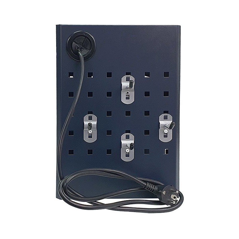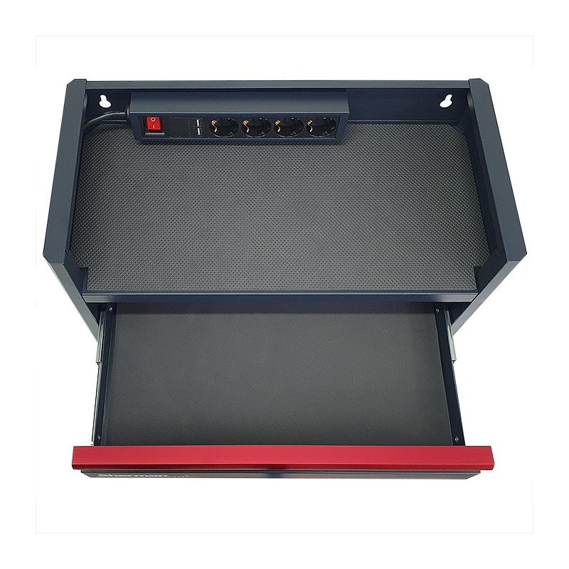Die integrierte Steckdosenleiste mit vier Steckdosen und zwei USB-A-Anschlüssen ermöglicht den einfachen Anschluss verschiedener Geräte, was den Schrank äußerst praktisch macht. So haben Sie alle Ihre Elektrowerkzeuge griffbereit und jederzeit einsatzbereit.