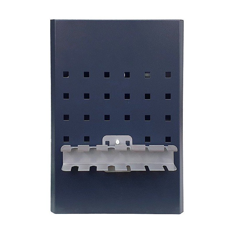 Der Schrank wurde für eine optimale Werkzeugorganisation konzipiert. Er bietet fünf Plätze für Elektrowerkzeuge, eine Halterung für Schraubendreher sowie vier Haken, was einen bequemen Zugriff auf die am häufigsten verwendeten Werkzeuge gewährleistet. Dadurch wird die Arbeit effizienter und angenehmer.