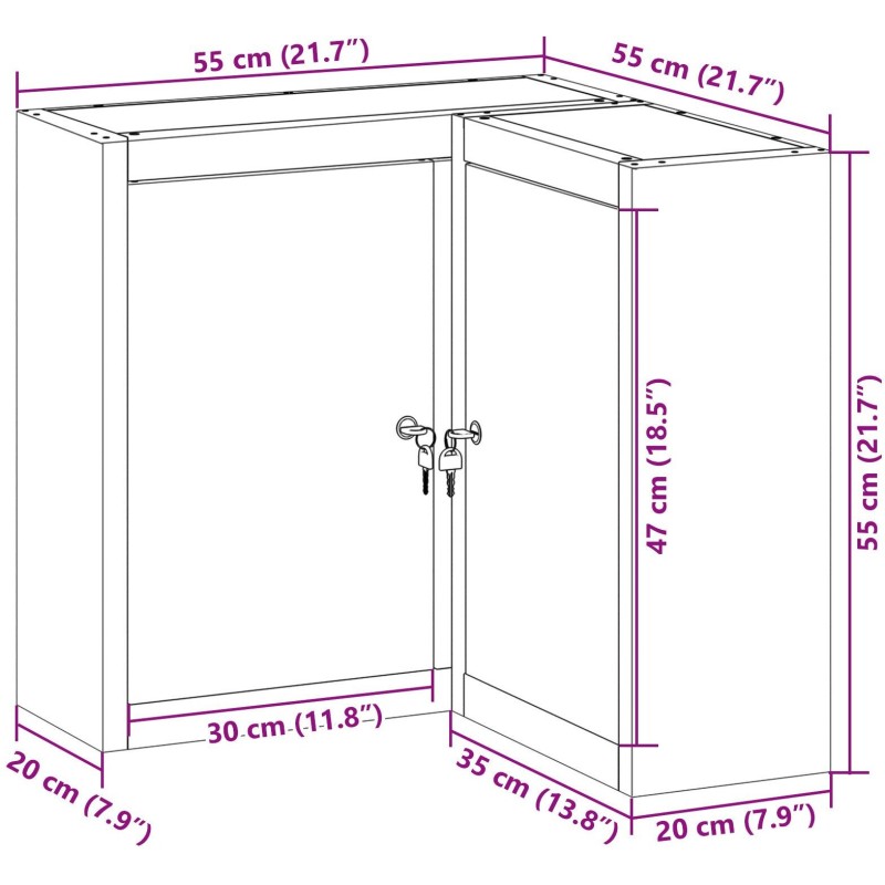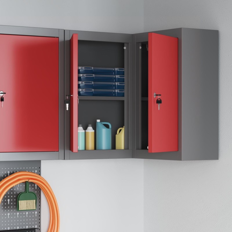 VidaXL Eck-Werkzeugschrank, wandmontiert und mit Schloss, roter Stahl