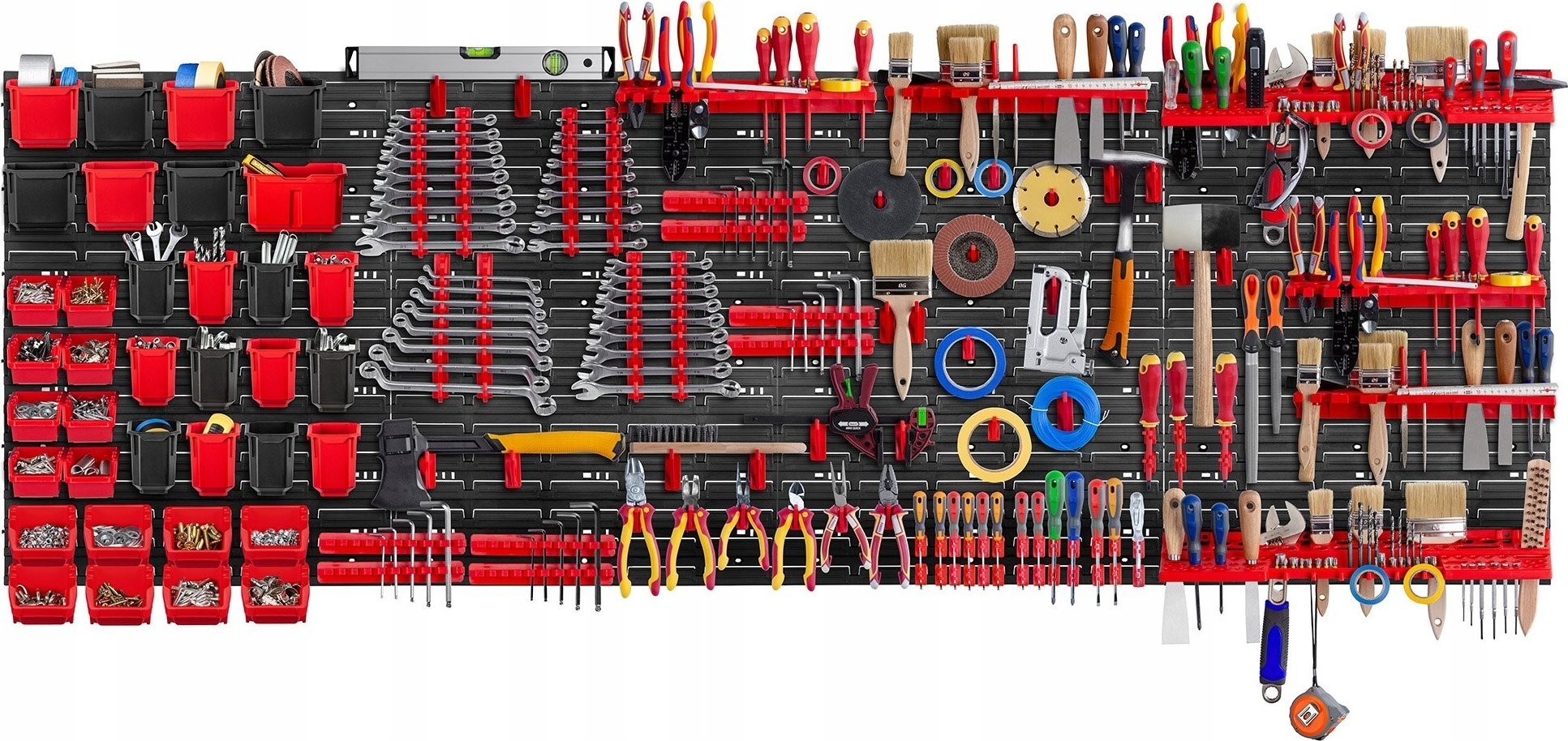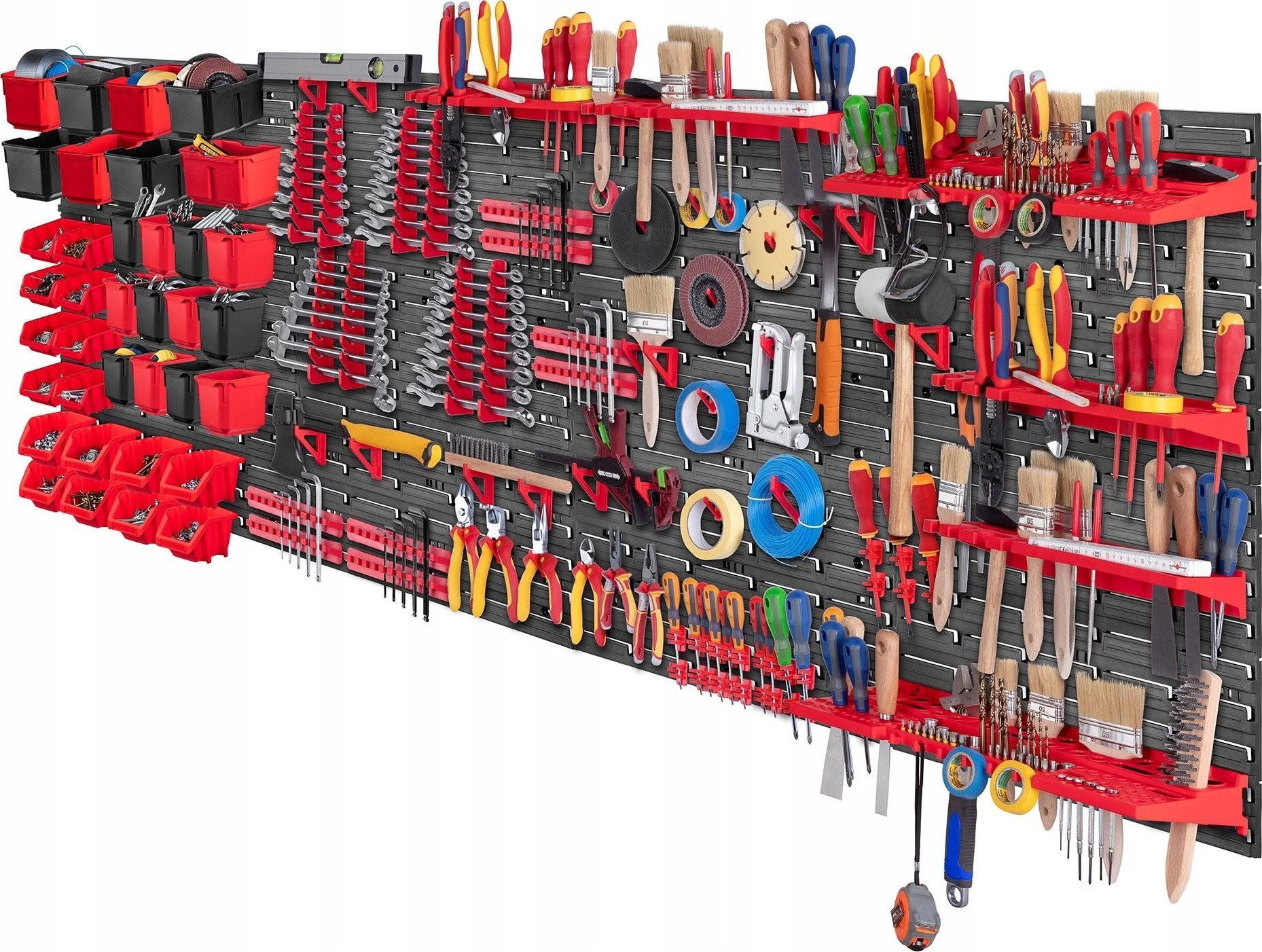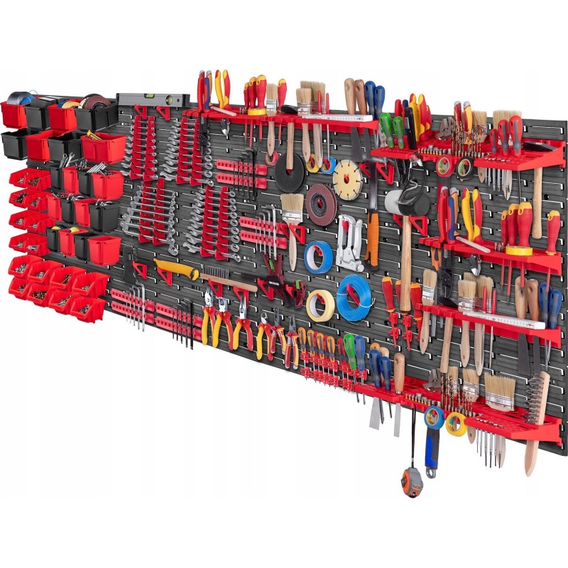 PERFEKTE ORGANISATION – Die große Werkstattwand ermöglicht Ihnen eine praktische und bequeme Anordnung aller Werkzeuge. Das im Set enthaltene nützliche Zubehör sorgt für die Sicherheit der aufbewahrten Gegenstände.