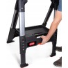 Der Ständer ist mobil und nimmt zusammengeklappt in flacher Position nicht viel Platz ein. Die Arbeit selbst erfolgt in aufrechter Haltung – das System zum Öffnen und Schließen der Verriegelung ermöglicht eine Höhenverstellung des Ständers im Bereich von 78 bis 99 cm. So arbeiten Sie unter komfortablen Bedingungen, ohne sich übermäßig bücken zu müssen und Ihre Muskeln einer erhöhten Belastung und Anspannung auszusetzen.