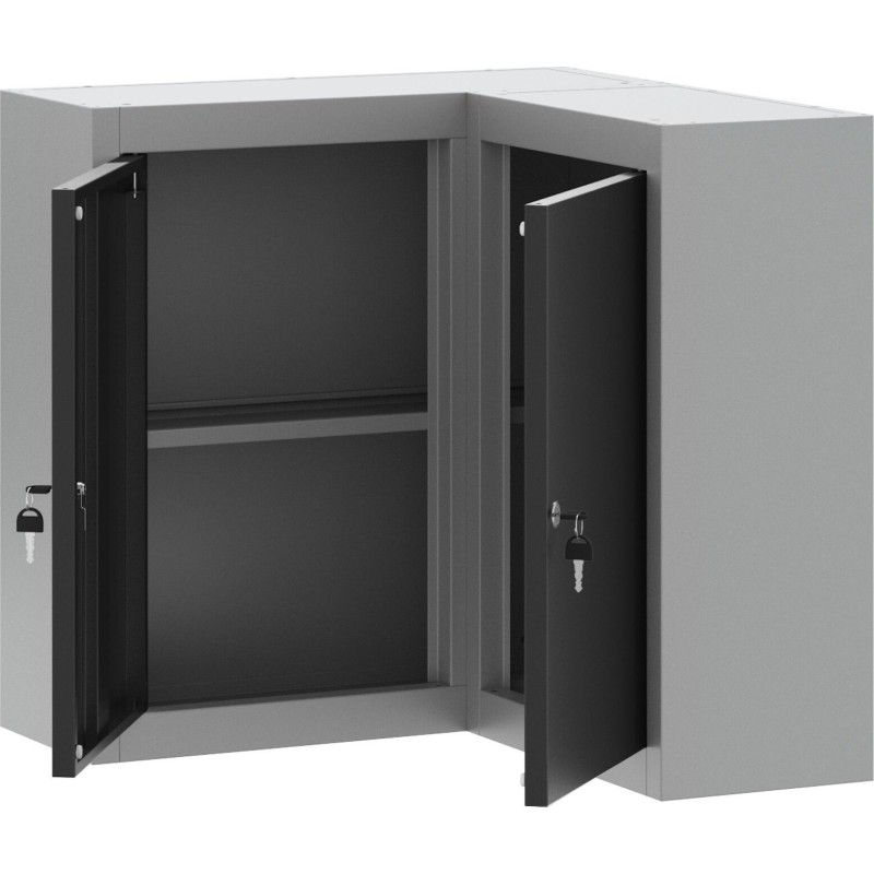 Dieser L-förmige Wandschrank verbindet modernen Stil mit Funktionalität und passt hervorragend in jedes Interieur. Mit seinem eleganten Design in Grau- und Schwarztönen bietet er nicht nur viel Stauraum, sondern verleiht dem Raum auch eine edle Note, was ihn ideal für das Hobbyzimmer, den Balkon oder die Werkstatt macht.