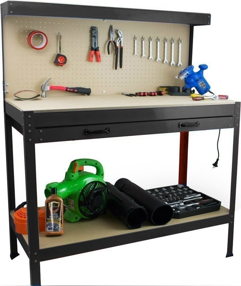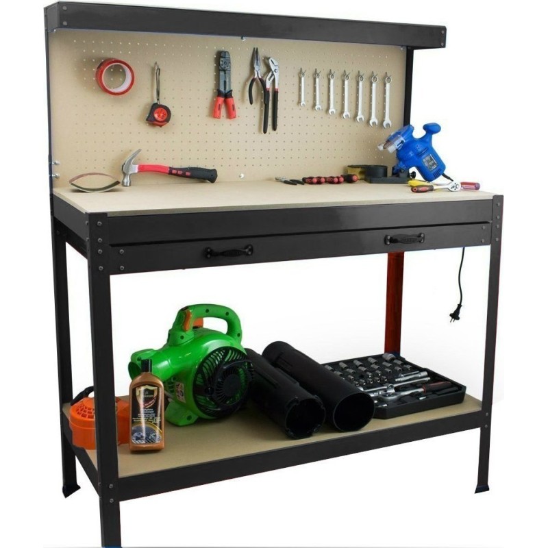 Unser Tisch findet in jeder Werkstatt, Garage oder jedem Hauswirtschaftsraum praktische Anwendung. Eine große Schublade zur Aufbewahrung von Werkzeugen, Halterungen zum Aufhängen von Schlüsseln und eine Ablage für diverses Zubehör. In Ihrer Garage herrscht endlich Ordnung. Der Tisch wurde aus hochwertigen Materialien gefertigt, wodurch er stabil ist und einer Belastung von bis zu 100 kg standhält. Jetzt wird das Heimwerken zum wahren Vergnügen.