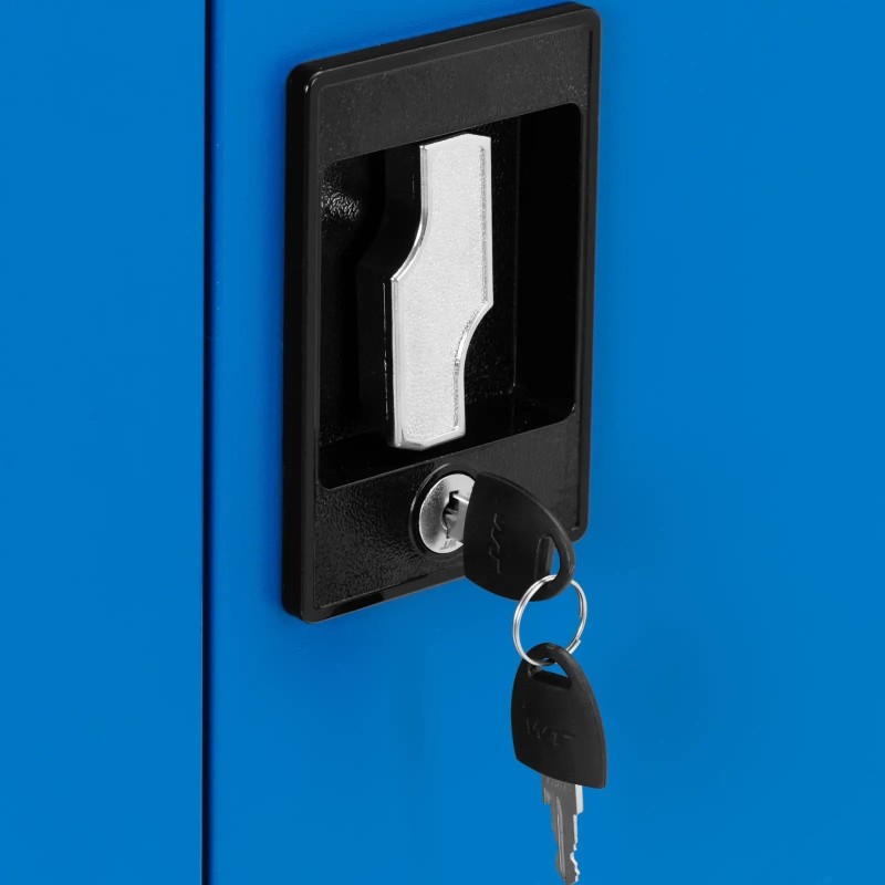 • - Der Werkzeugschrank ist mit einem 3-Punkt-Schloss ausgestattet, das den Innenraum verschließt und unbefugten Zugriff verhindert.