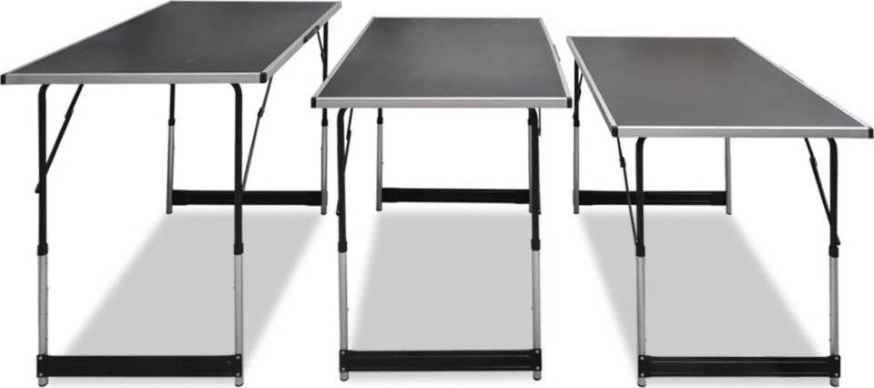3 klappbare TischeAbmessungen der Tischplatte: 100 x 60 cmHöhenverstellbar: 73, 80, 87, 94 cm