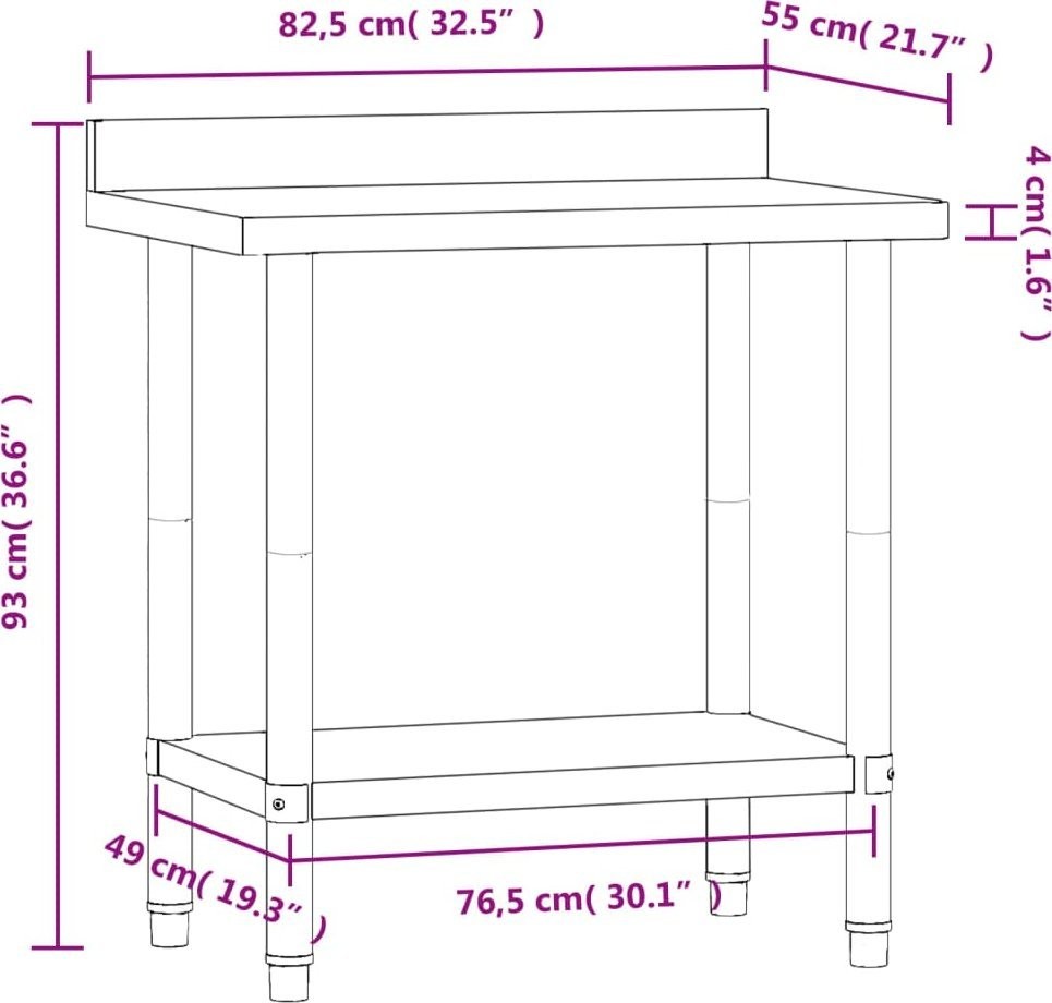 vidaXL Küchentisch mit Aufkantung, 82,5 x 55 x 93 cm, Edelstahl