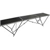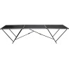 Der Tisch verfügt über einen Rahmen aus robustem und leichtem Aluminium sowie eine Tischplatte aus leicht zu reinigendem MDF. Er kann bis zu 30 kg tragen. Seine Beine aus Stahlrohren haben eine W-Form und sorgen für Langlebigkeit und Stabilität. Der Tisch ist zusammenklappbar, sodass er sich leicht transportieren und verstauen lässt, wenn er nicht gebraucht wird.