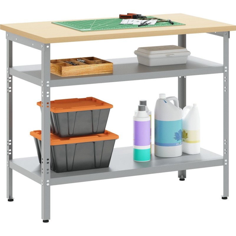 • Zwei Stauräume: Der Arbeitstisch verfügt über zwei Regalböden, die reichlich Platz für Werkzeuge und Materialien bieten, damit alles, was du brauchst, griffbereit ist. Dies ist die ideale Lösung für Künstler und Heimwerker, die deinen Arbeitsbereich wirklich aufwerten wird.