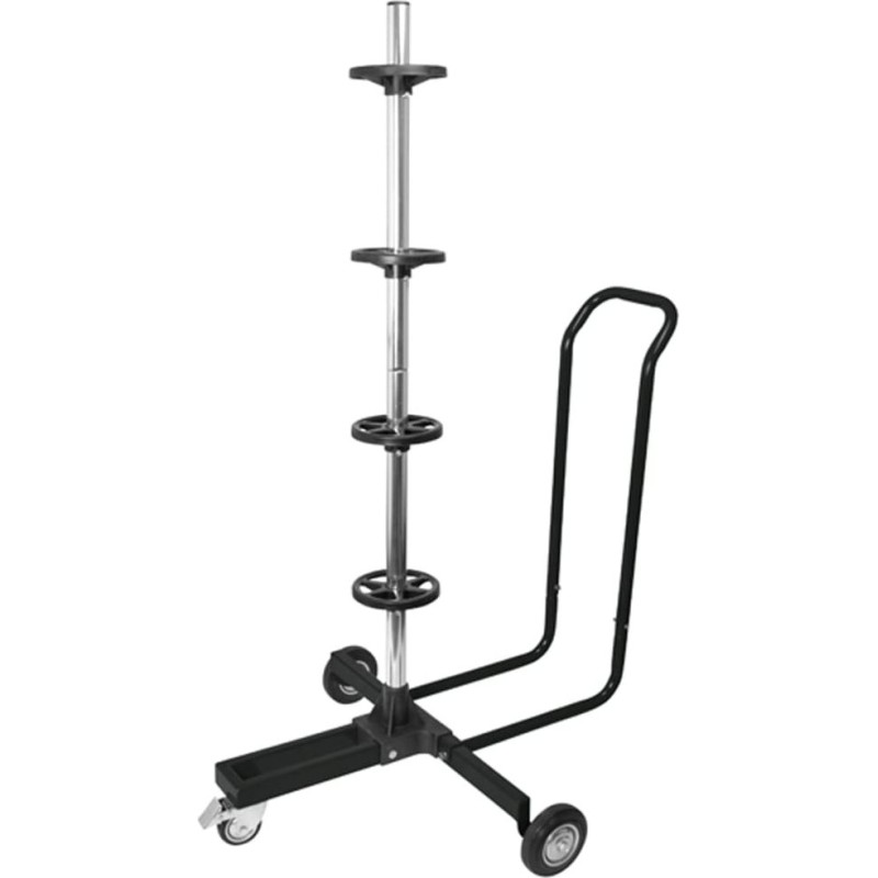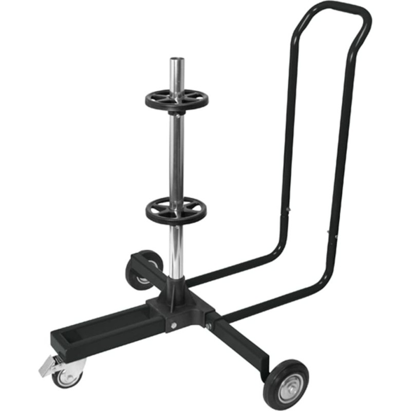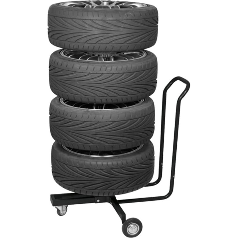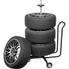 Er eignet sich ideal für die Lagerung von Saisonreifen, Wohnmobilreifen, ATV-Reifen und anderen Reifen. Dieser mobile, leichte Ständer ist aus Aluminium gefertigt und für Felgen mit einem maximalen Felgendurchmesser und Reifendurchmesser von 82 cm sowie einer Reifenbreite von 26,5 cm geeignet. Vier Kunststoffhalterungen ermöglichen die einfache Aufnahme von 4 Standard-Fahrzeugreifen im Gestell in schwimmender Anordnung, wodurch Verformungen durch Druckverlust verhindert werden. Dieser Reifenständer ist flexibel und verfügt über zwei Räder sowie ein Lenkrad mit Bremse, um schwere Reifen beim Wechsel mühelos zu transportieren.