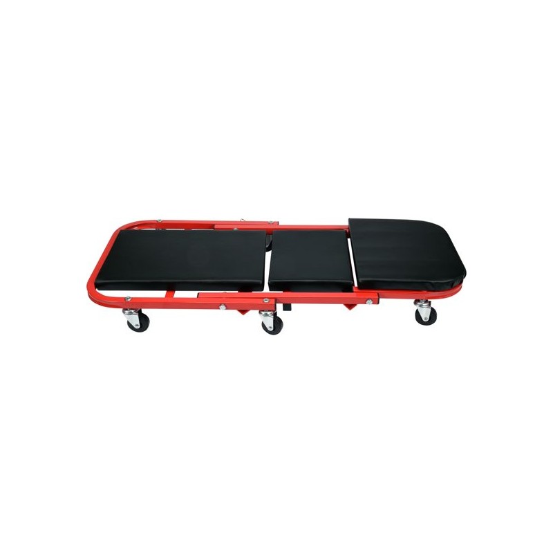 Werkstattliege mit 2-in-1-Werkstattsitzfunktion.