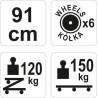 Sie ist mit 6 schwenkbaren Rollen auf Kugellagern ausgestattet, was das Manövrieren erheblich erleichtert.